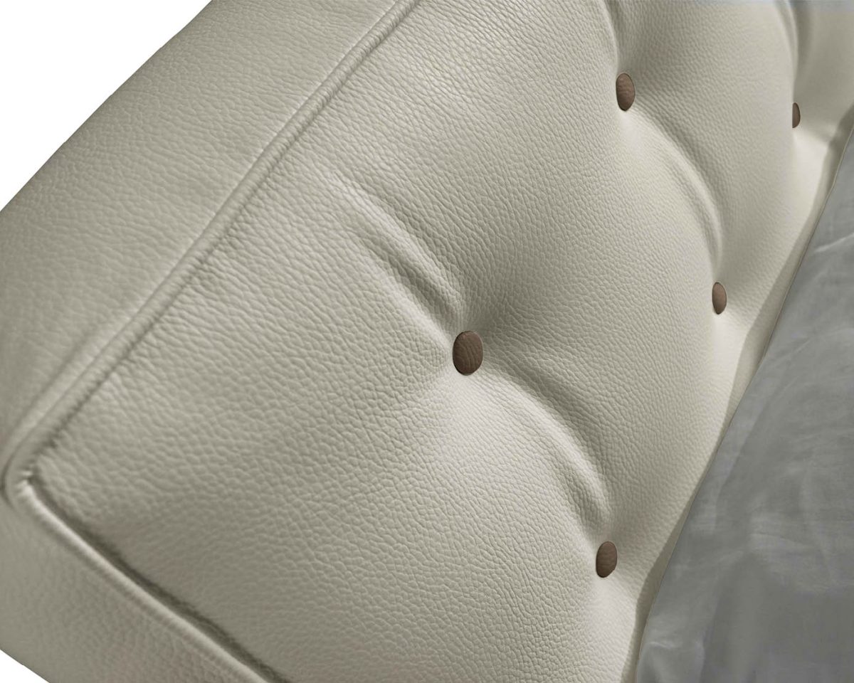 Tutti i letti vengono forniti con rete a doghe di serie. Il letto Abate è disponibile in tutti i tessuti,ecopelli e pellami del campionario Lettissimi. I letti costruiti utilizzando pelle, presentano una cucitura a vista a metà della fascia e all’occorenza (in base alla testata e alla pelle disponibile a magazzino), una cucitura centrale anche nel pannello della testata. In mancanza di una vostra esplicita richiesta il retro schienale dei letti prodotti in pelle verrà fornito con una tela a nostra discrezione. Sul giroletto H.22 e H.28 è possibile montare la gonna (mantovana). La testata del letto Abate può essere personalizzata con bottoni a scelta tra: