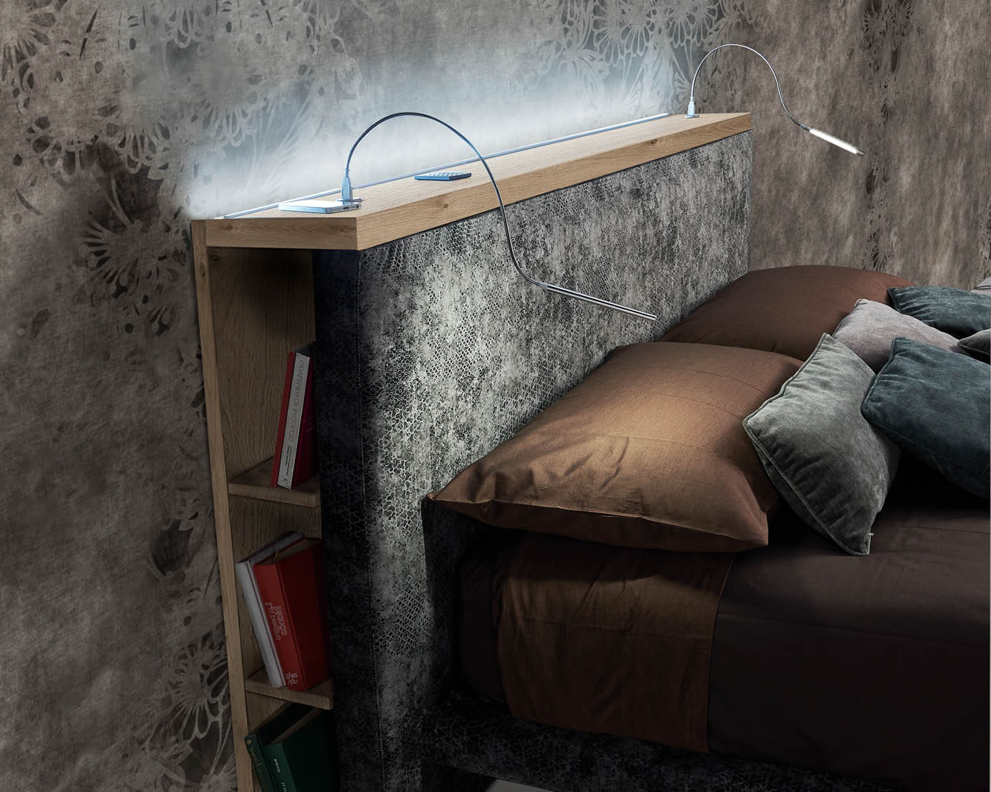 Il letto Alba è disponibile in tutti i tessuti,ecopelli e pellami del campionario Lettissimi.