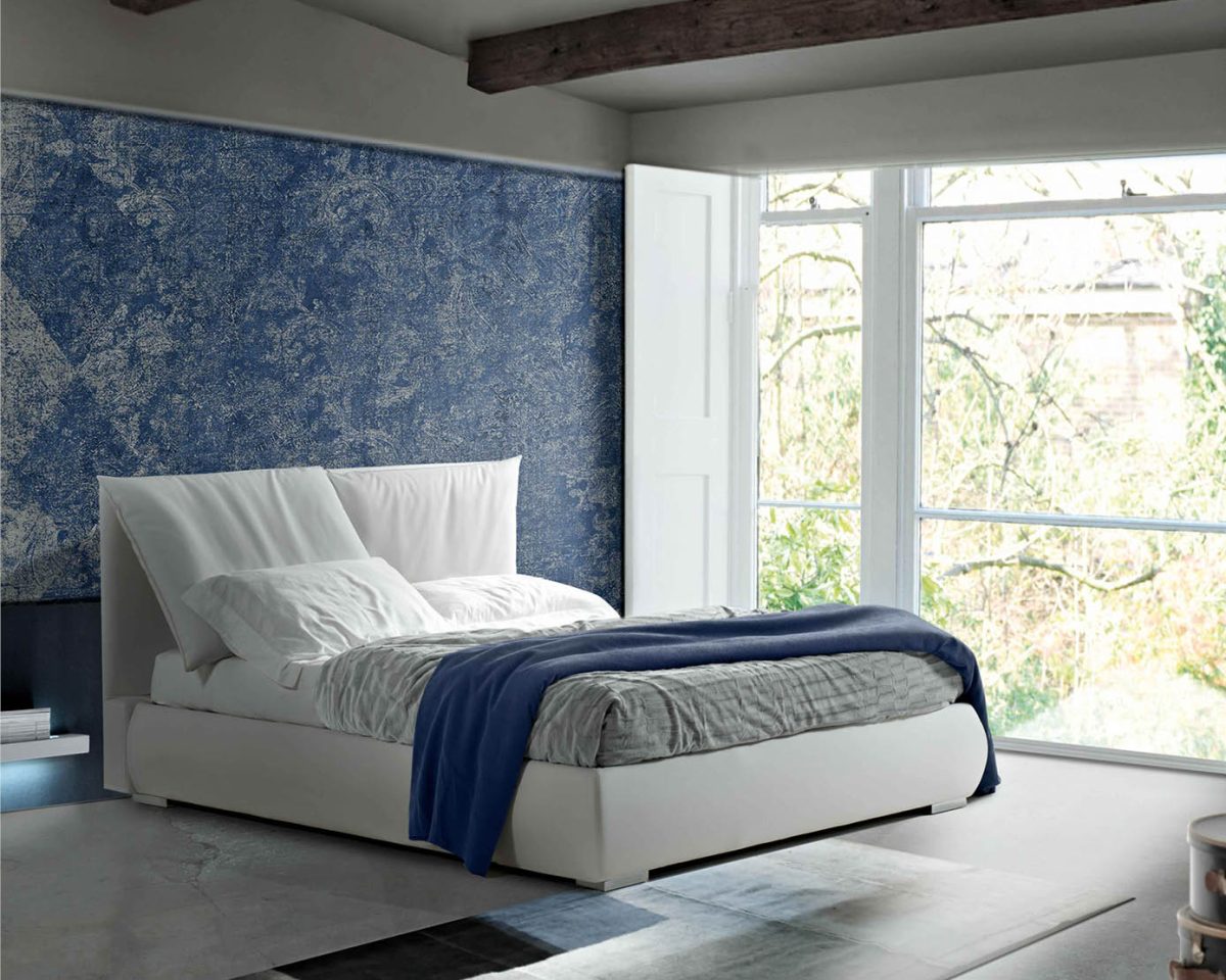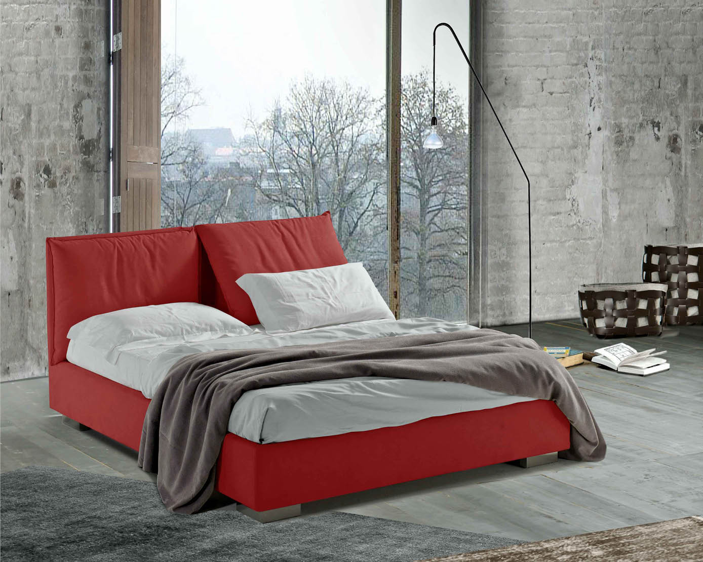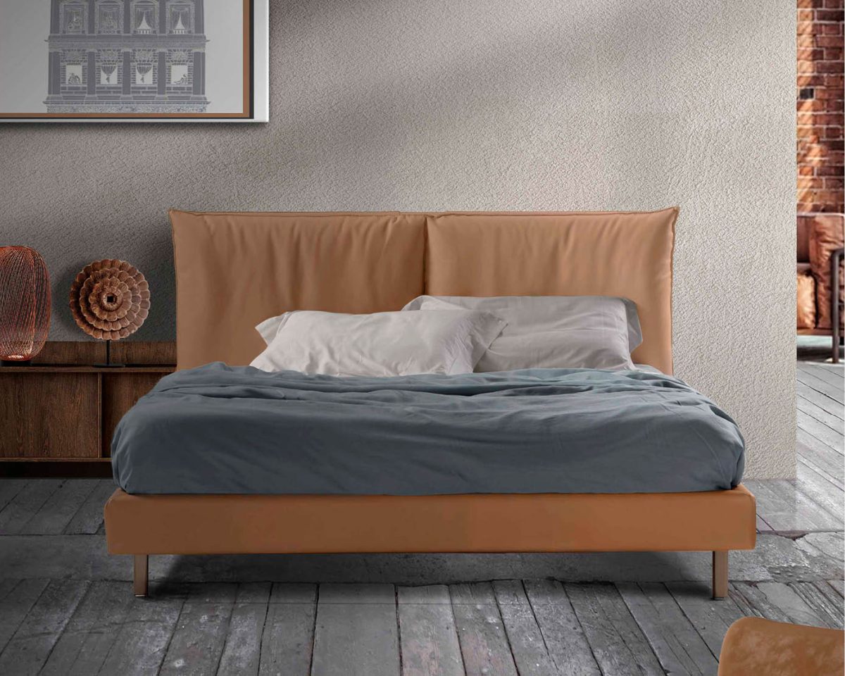 Il letto Alena è disponibile in tutti i tessuti,ecopelli e pellami del campionario Lettissimi.