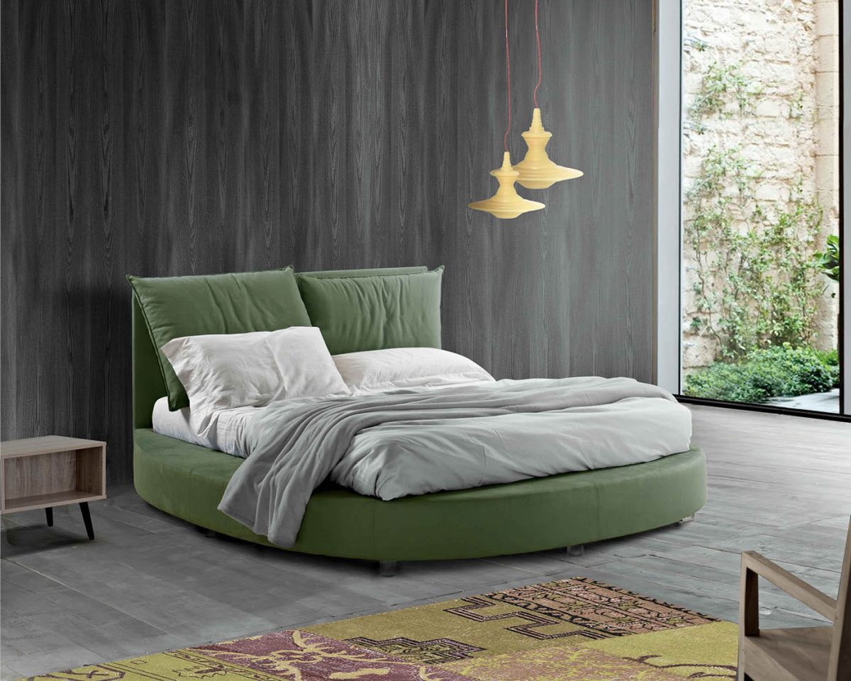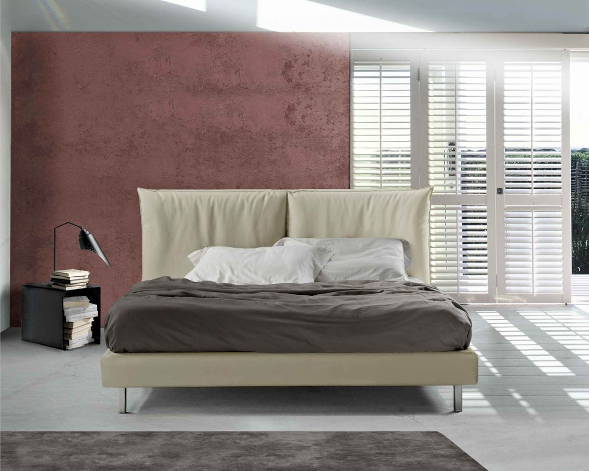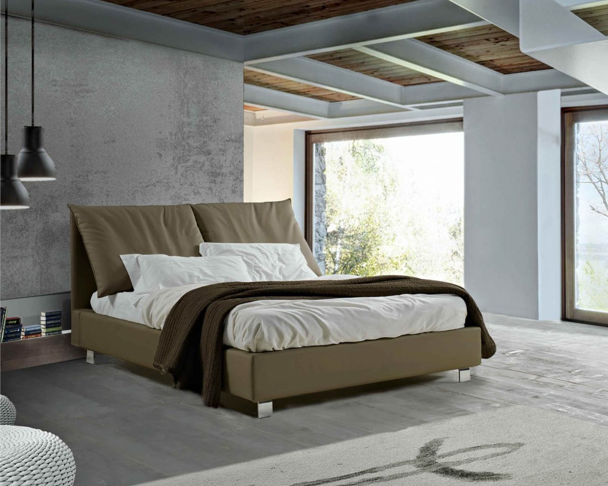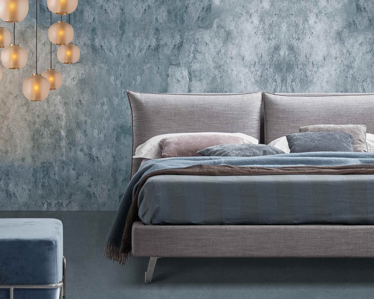 Il letto Alena è disponibile in tutti i tessuti,ecopelli e pellami del campionario Lettissimi.