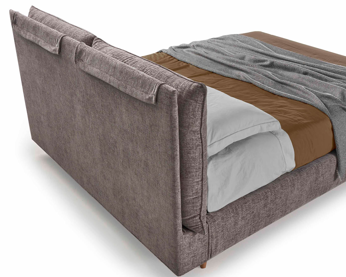 I cuscini del letto Alena sono uniti alla testata con una cerniera nascosta sul retro da una bandella, consentendo alla testata il movimento recliner (senza meccanismo). L’anima in multistrato dei cuscini del letto Alena, permette di utilizzarli come comodi e pratici poggiaschiena.