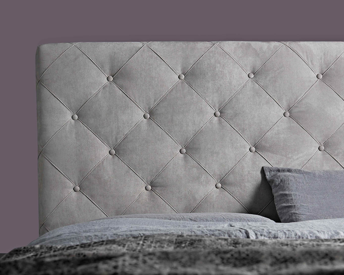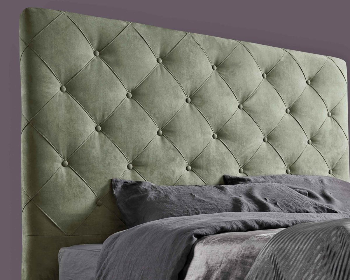 La testata capitonnè del letto Anastasia può essere personalizzata con bottoni a scelta tra: