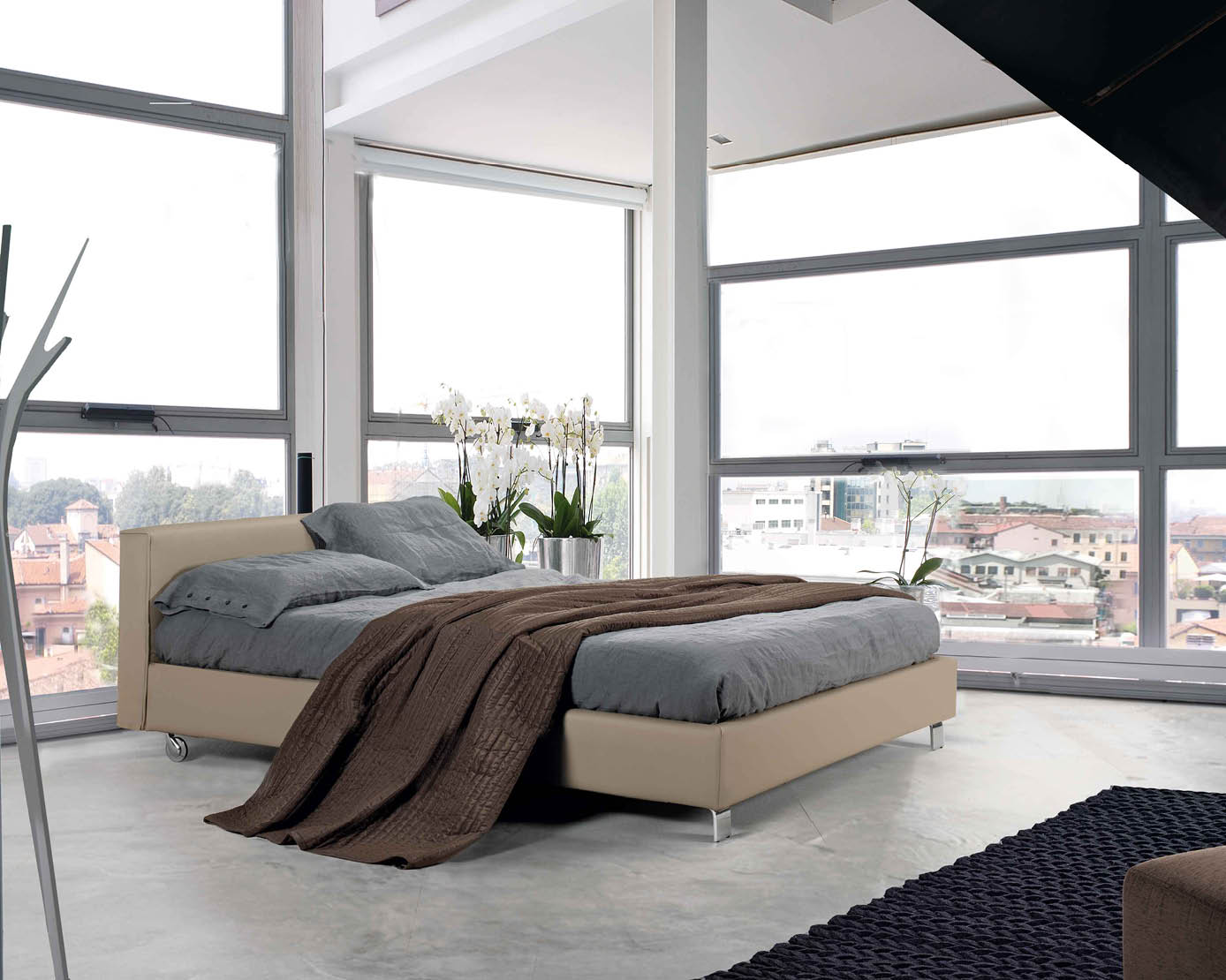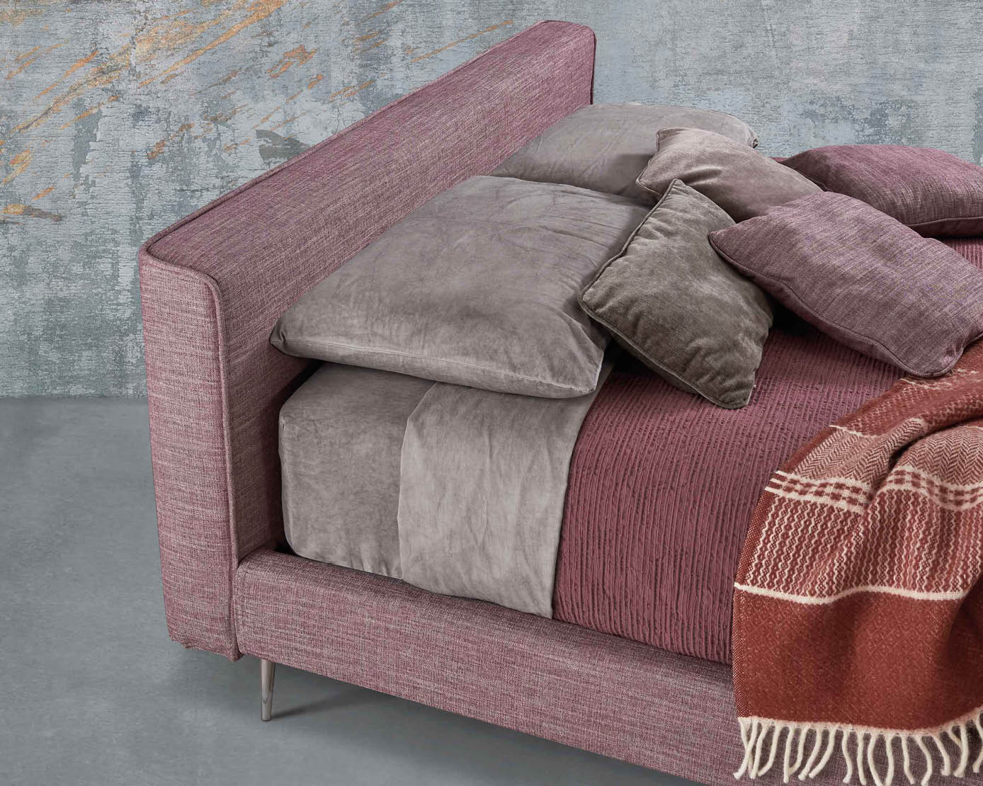 Il letto Filo è disponibile in tutti i tessuti,ecopelli e pellami del campionario Lettissimi.