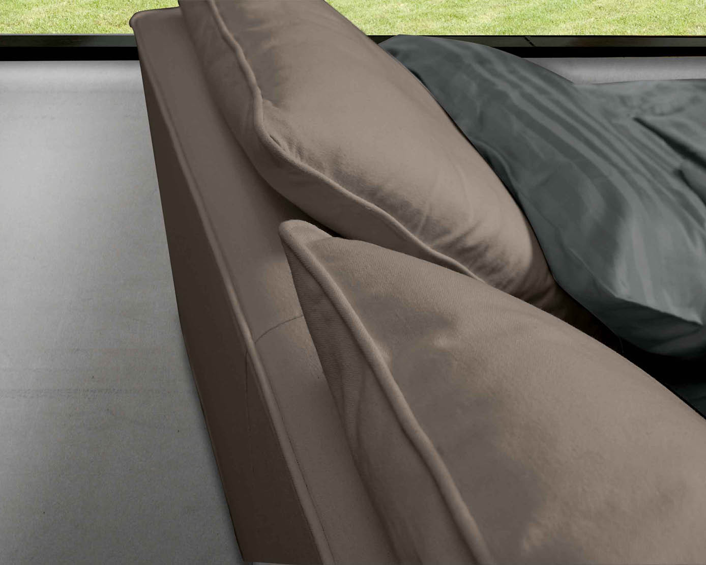 Se di desidera, è possibile arricchire la testata del letto Fiocco con la coppia cuscini (cuscino quadrato + rullo).