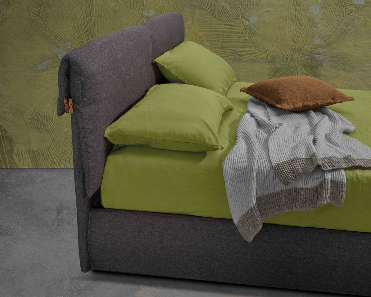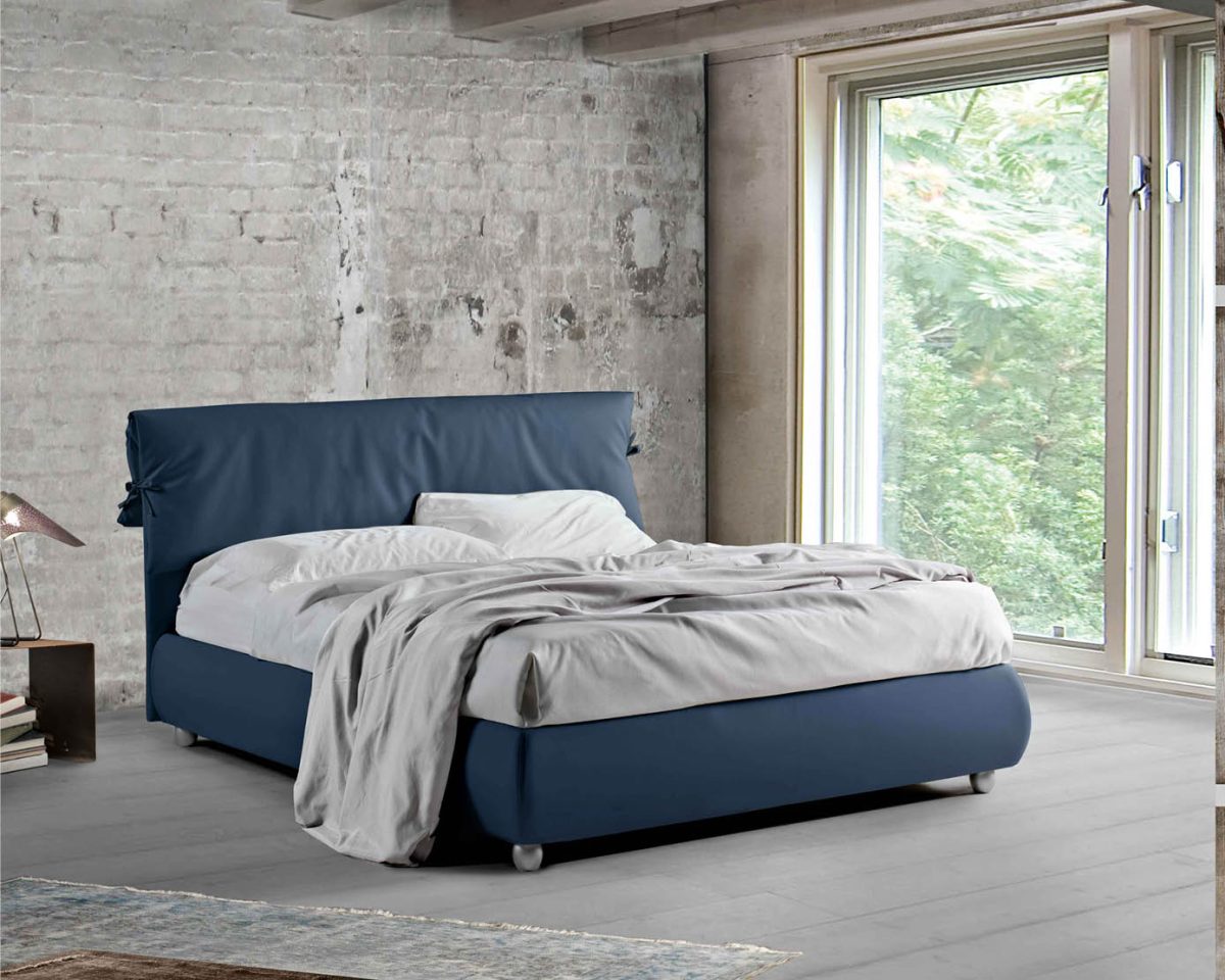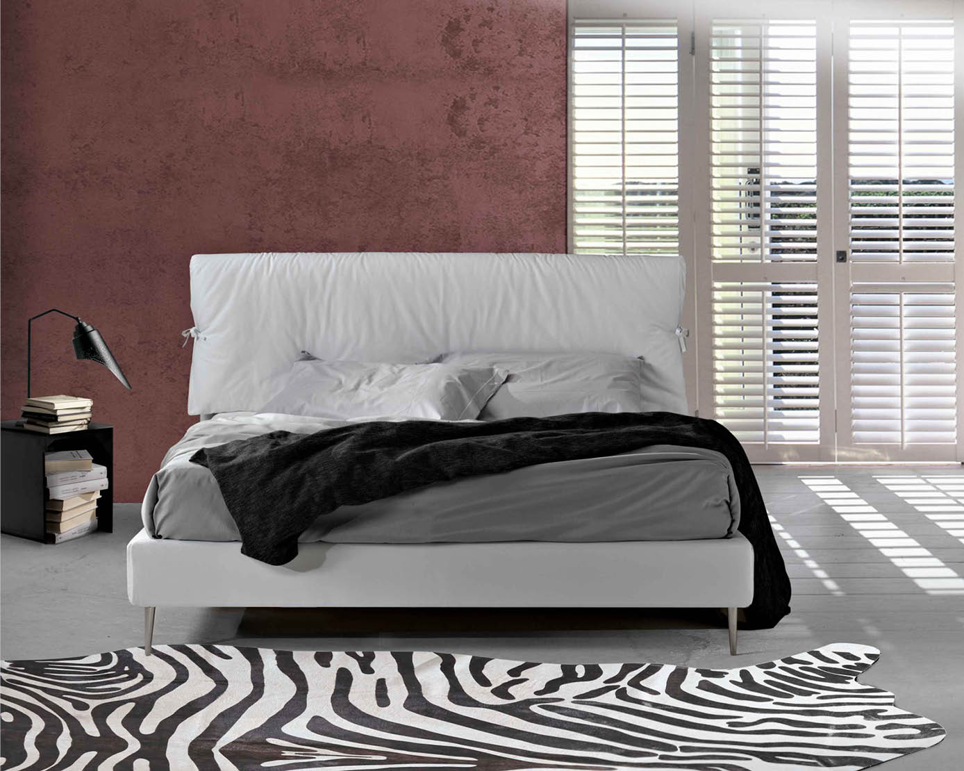 Il letto Fiocco è disponibile in tutti i tessuti,ecopelli e pellami del campionario Lettissimi.