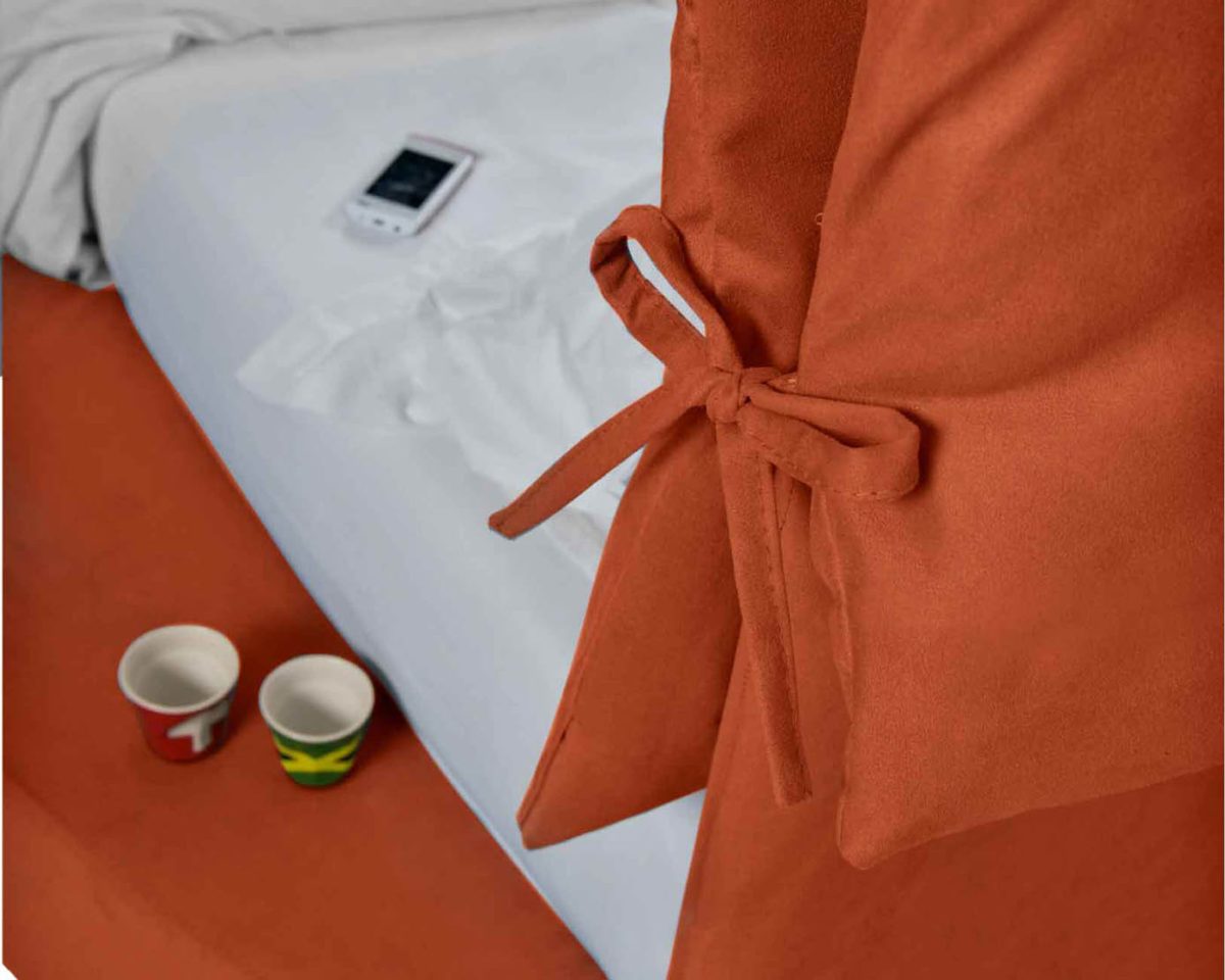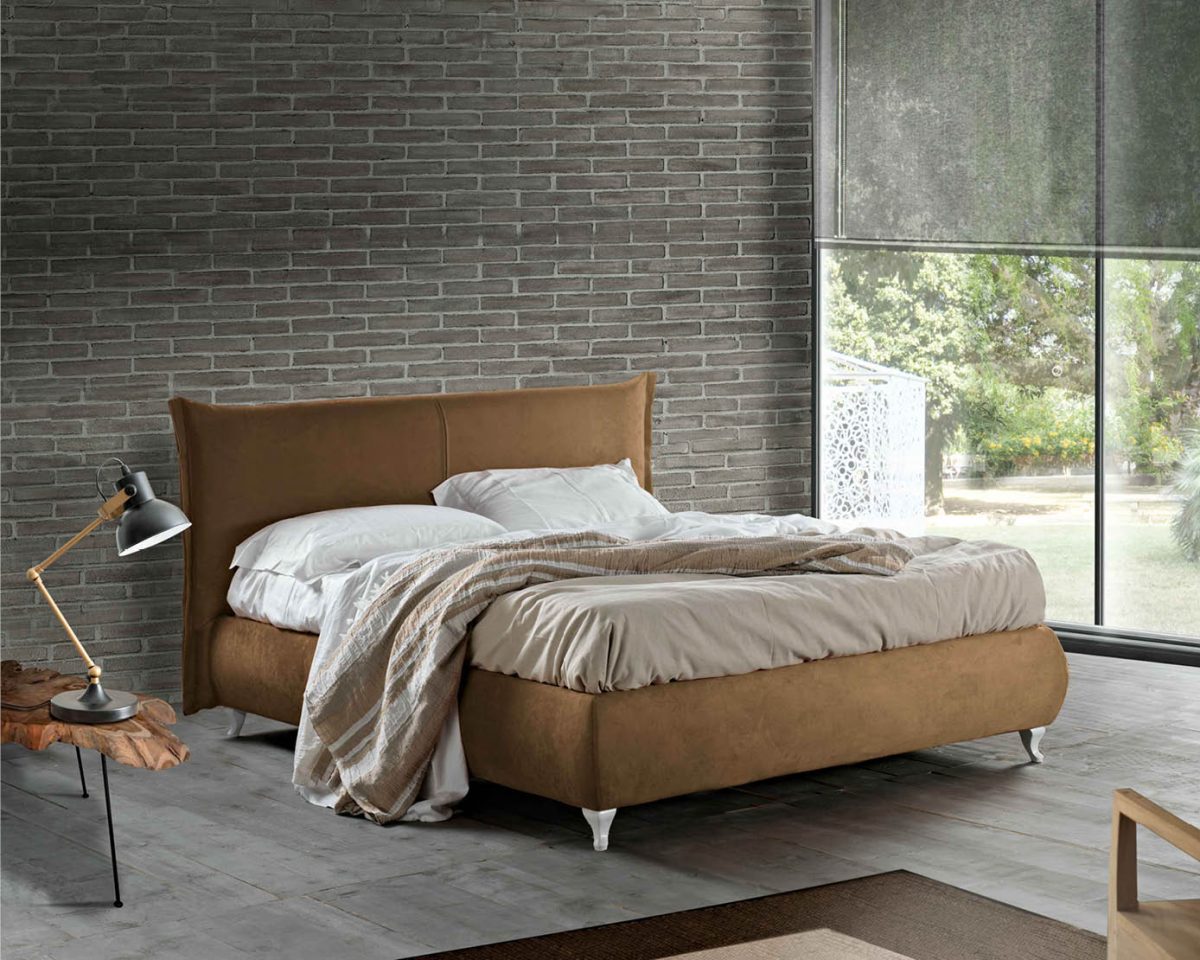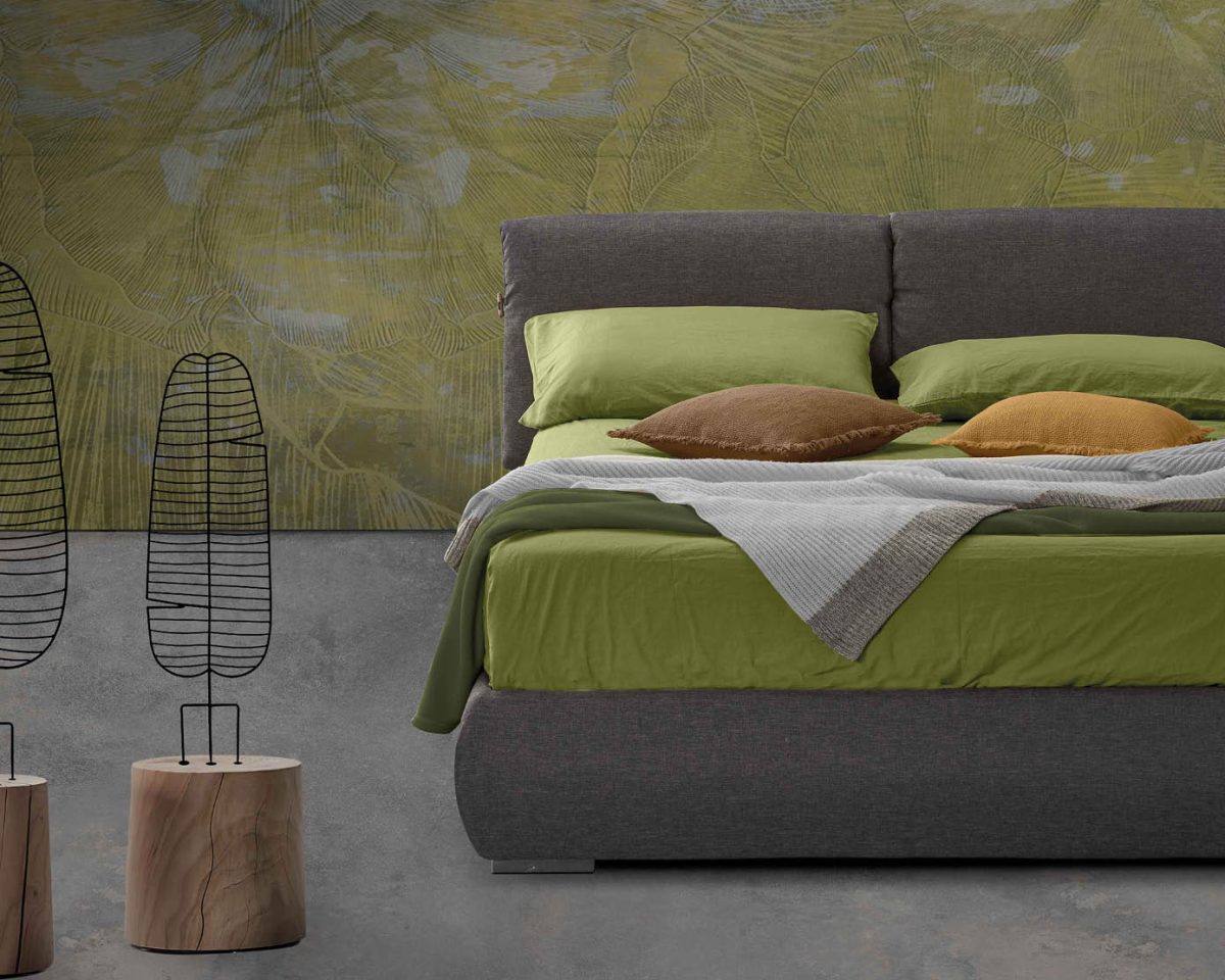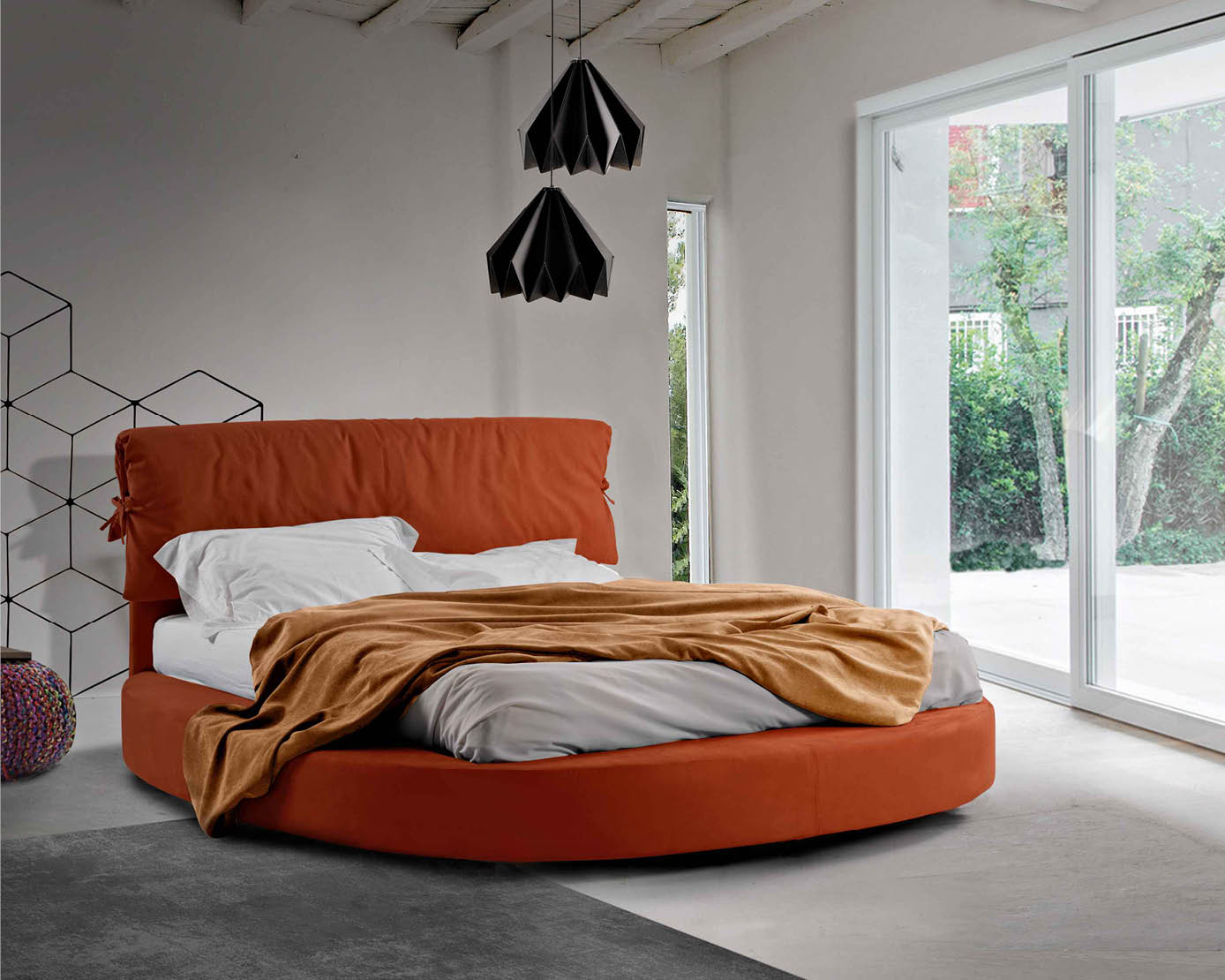 Il letto Fiocco è disponibile in tutti i tessuti,ecopelli e pellami del campionario Lettissimi.