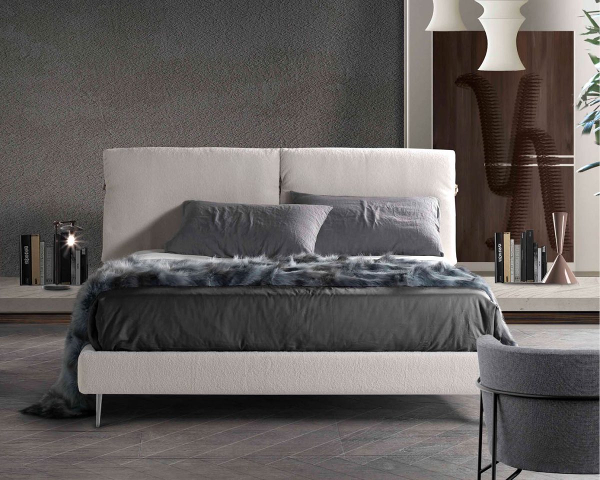 Nelle versioni Matrimoniale Maxi 180 e Matrimoniale 160, il letto Fiocco può essere fornito con cuscino unito o cuscino separato.
