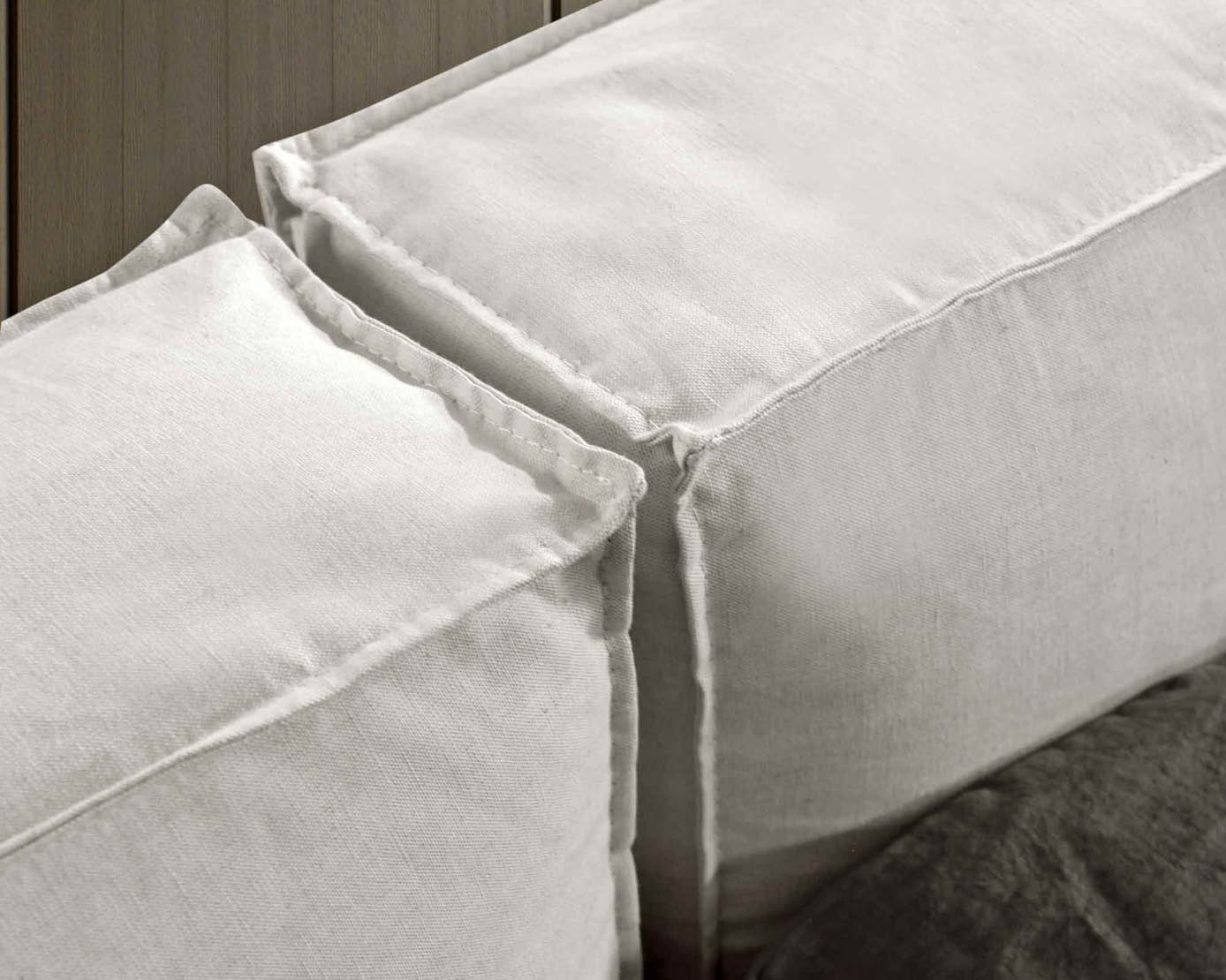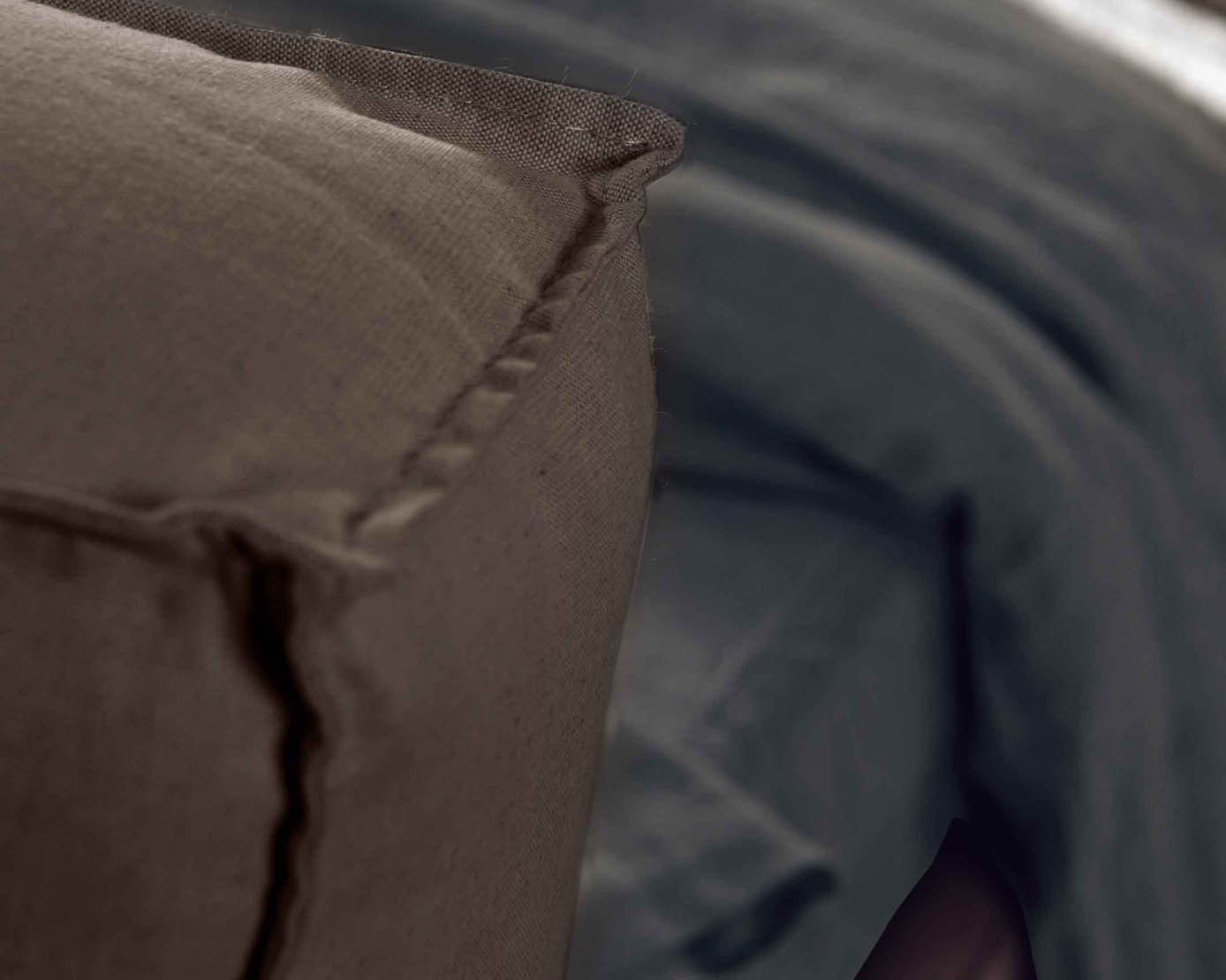 I letti costruiti utilizzando pelle, presentano una cucitura a vista a metà della fascia e all’occorenza (in base alla testata e alla pelle disponibile a magazzino), una cucitura centrale anche nel pannello della testata.