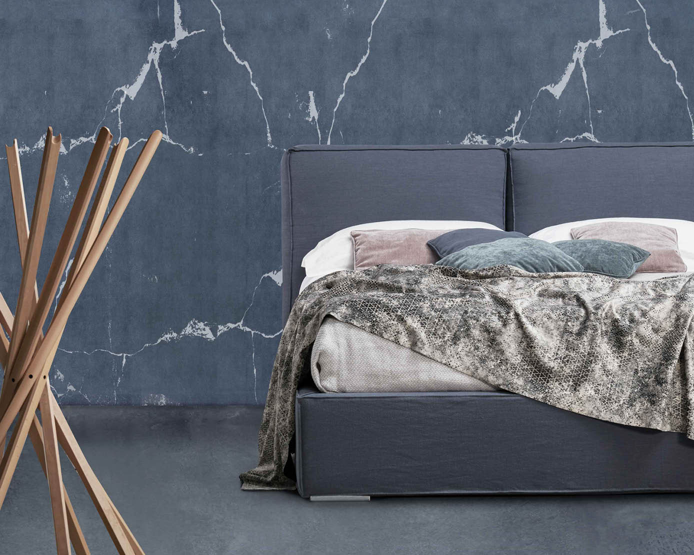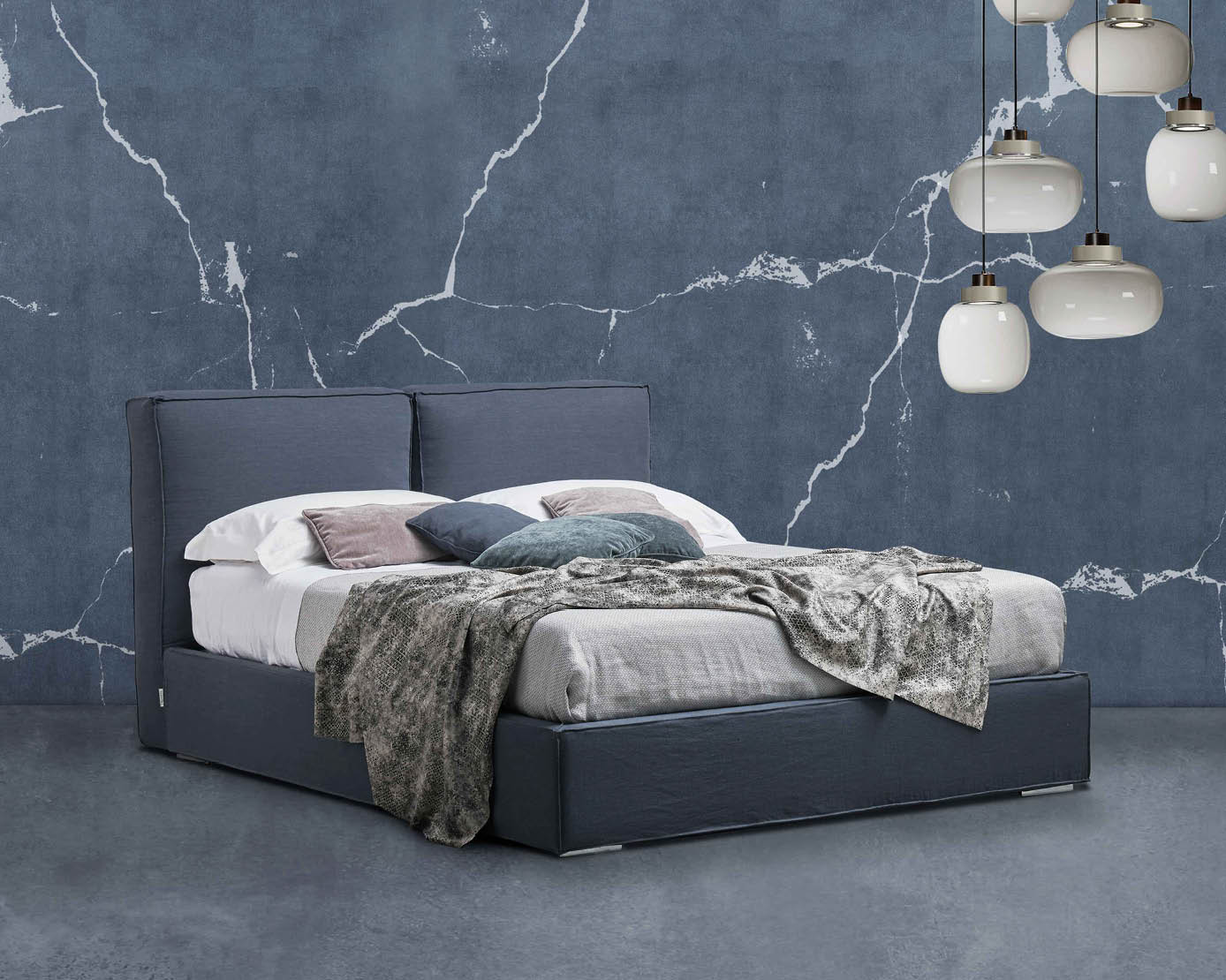 Il letto Imperiale Basso è disponibile in tutti i tessuti,ecopelli e pellami del campionario Lettissimi.
