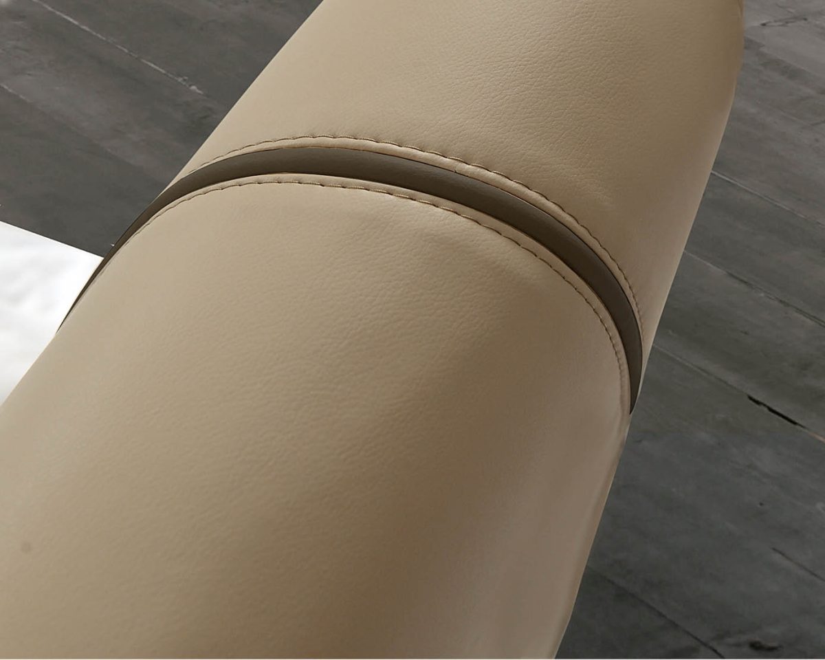 I letti costruiti utilizzando pelle, presentano una cucitura a vista a metà della fascia e all’occorenza (in base alla testata e alla pelle disponibile a magazzino), una cucitura centrale anche nel pannello della testata.