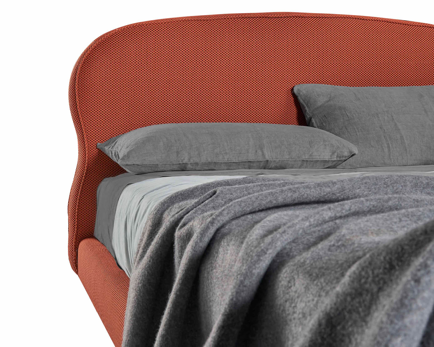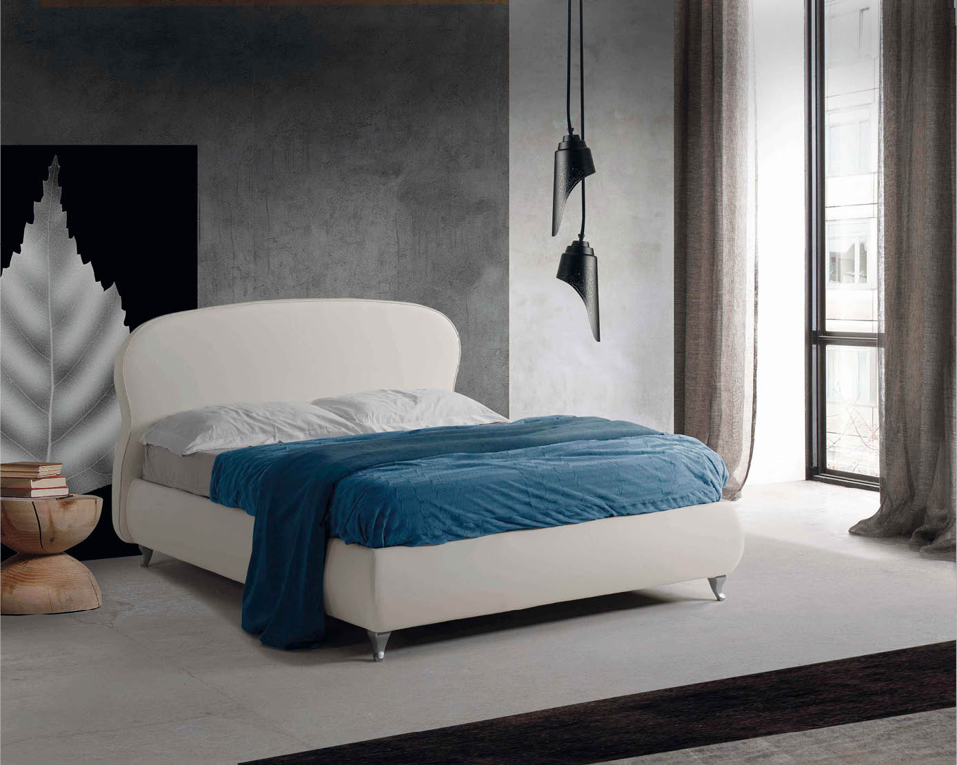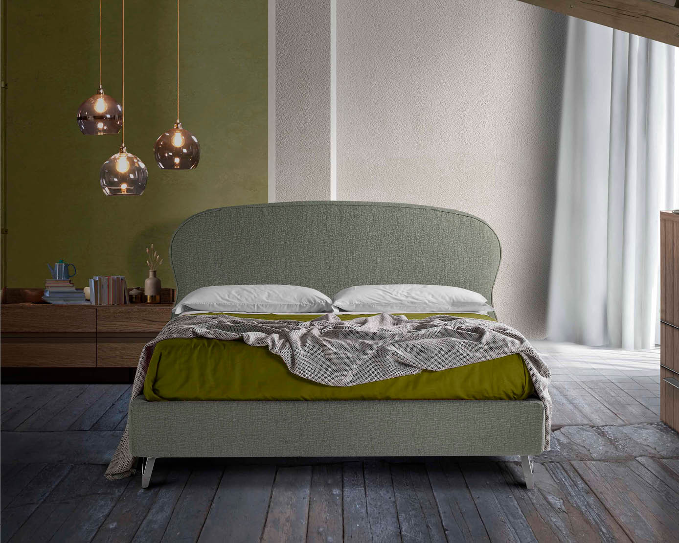 Il letto Sospiro è disponibile in tutti i tessuti,ecopelli e pellami del campionario Lettissimi.