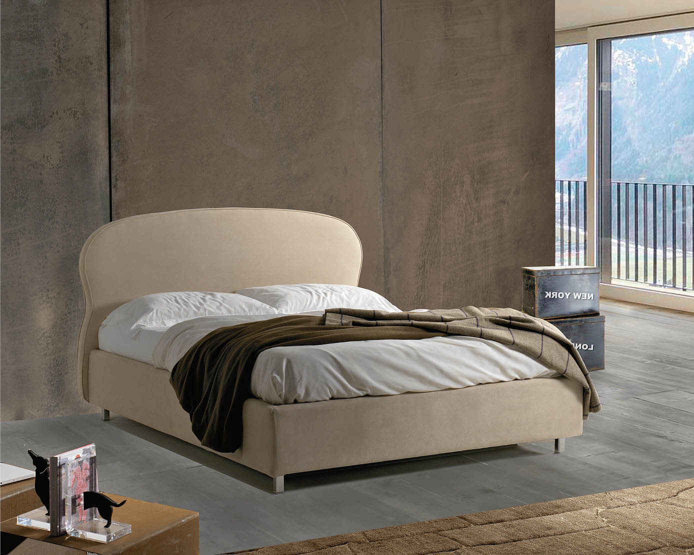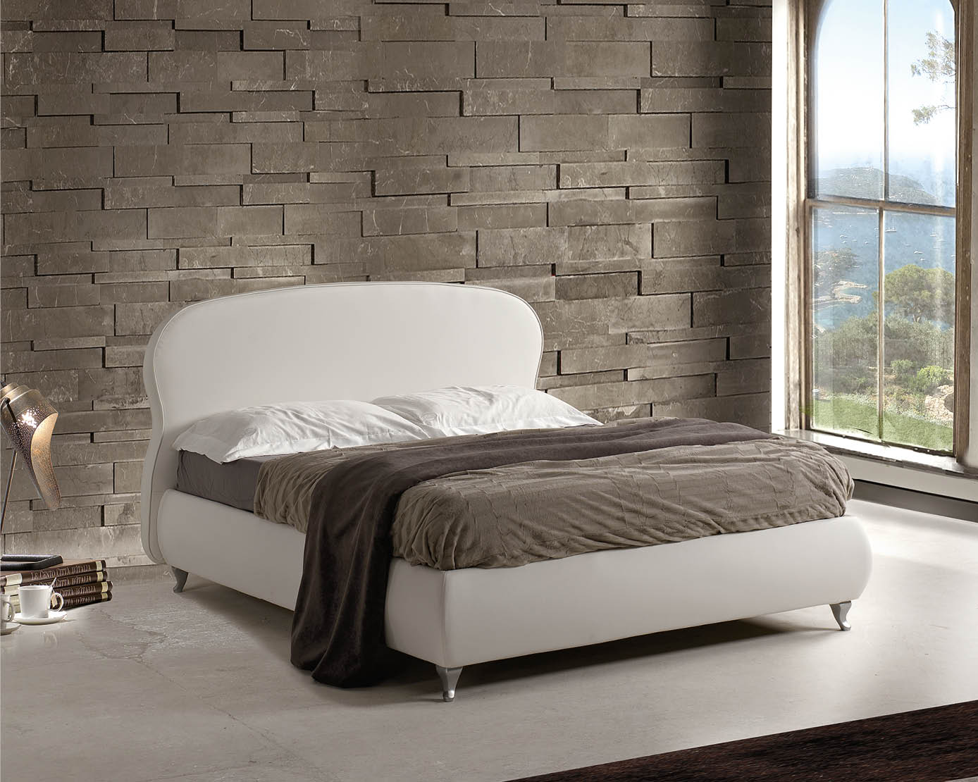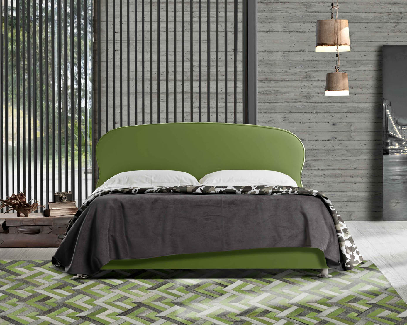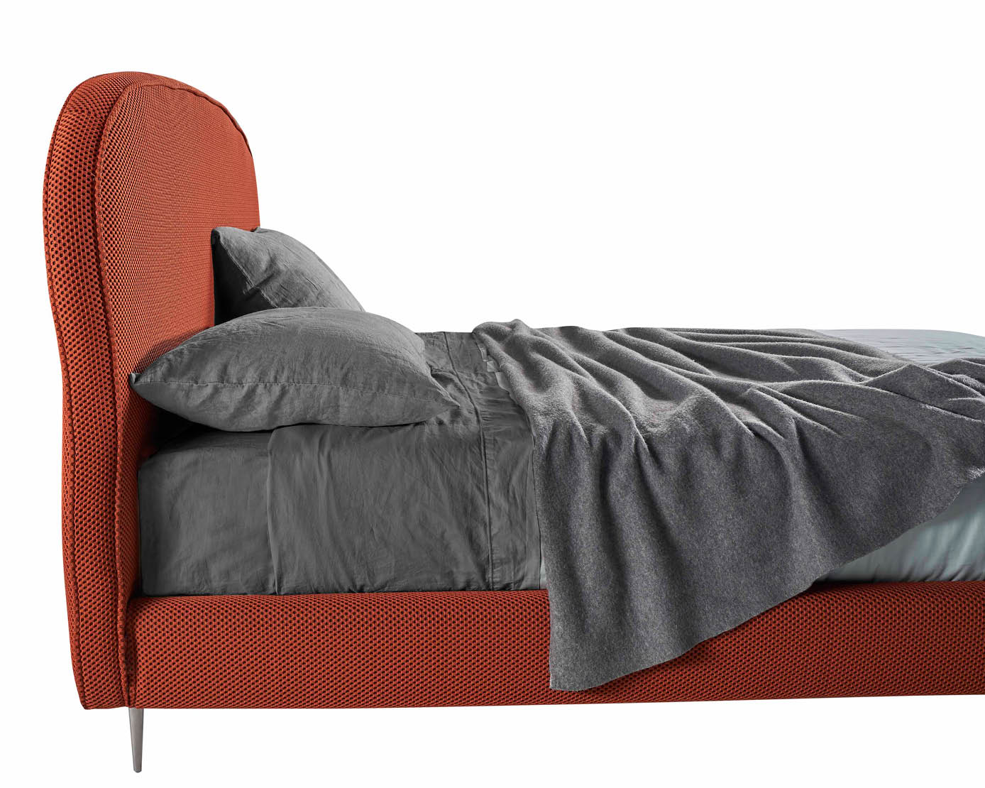 Il letto Sospiro è disponibile in tutti i tessuti,ecopelli e pellami del campionario Lettissimi.