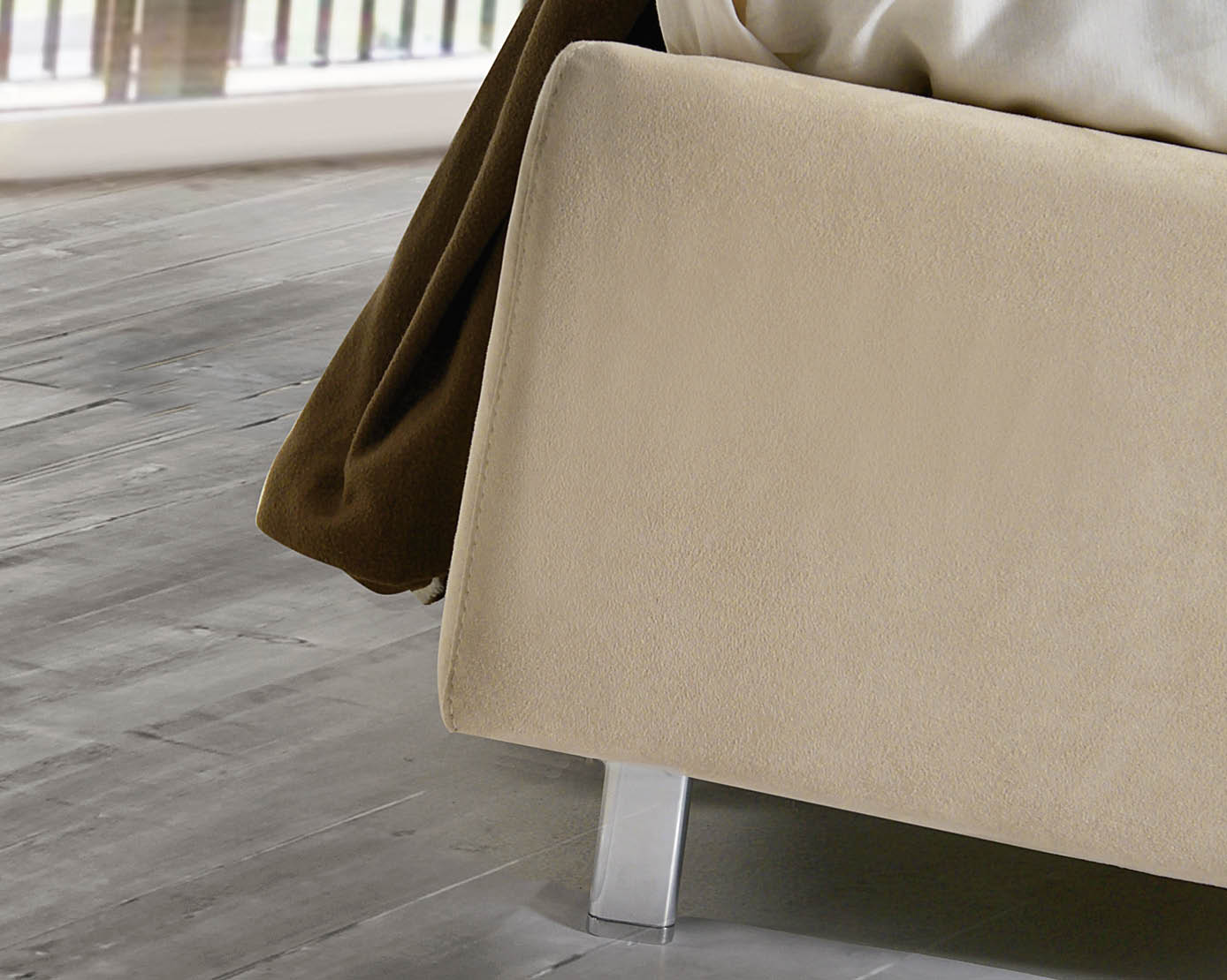 I letti costruiti utilizzando pelle, presentano una cucitura a vista a metà della fascia e all’occorenza (in base alla testata e alla pelle disponibile a magazzino), una cucitura centrale anche nel pannello della testata.