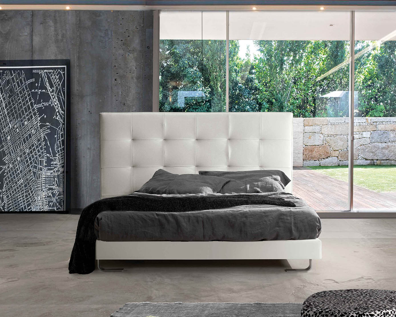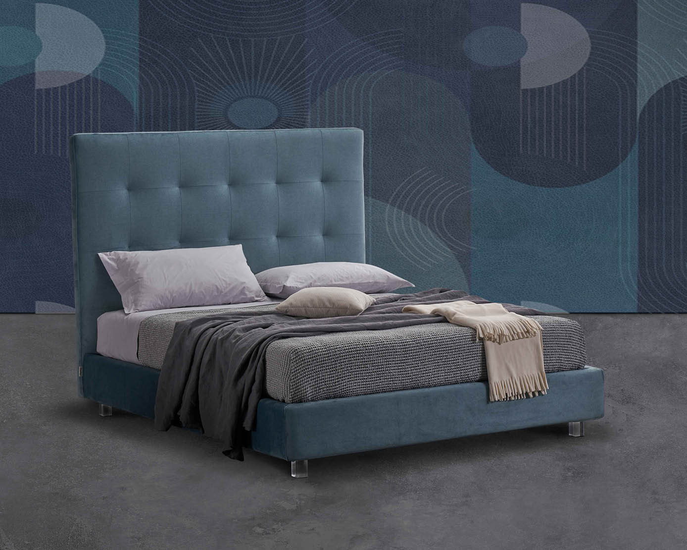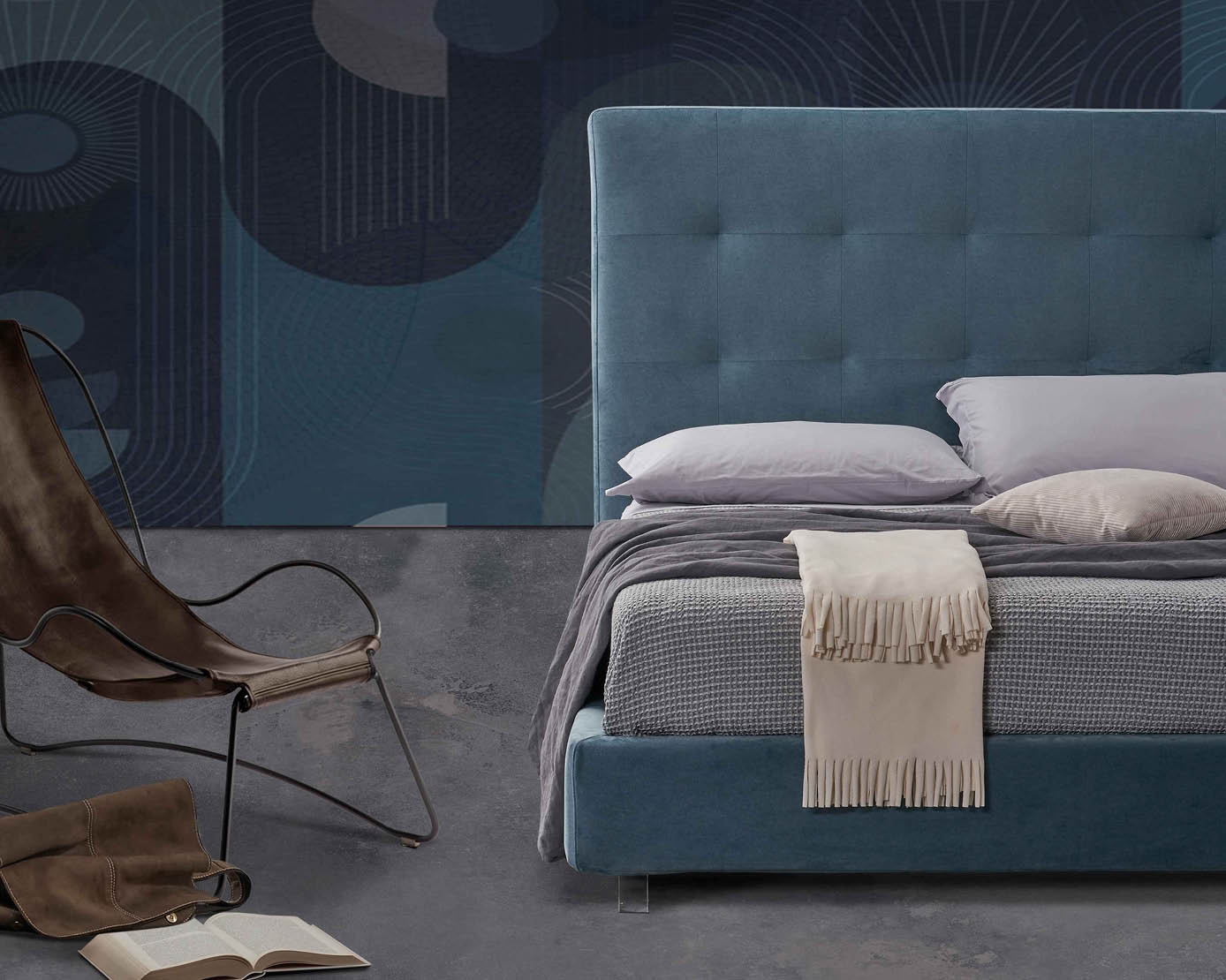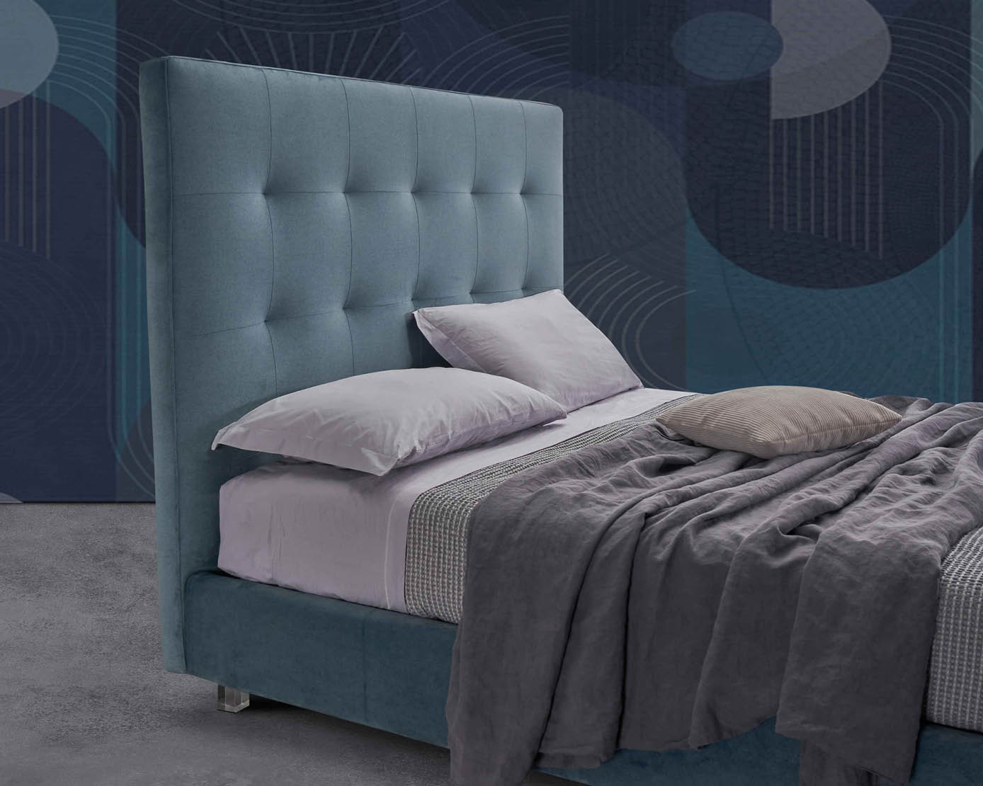 Il letto Vela Alto è disponibile in tutti i tessuti,ecopelli e pellami del campionario Lettissimi.